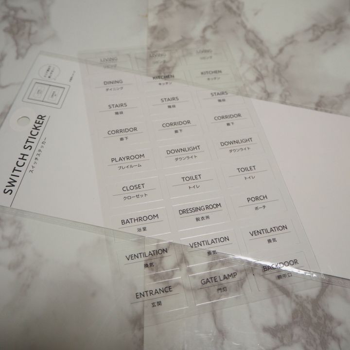 ステッカーの種類もキッチン、リビングなどの主要な部屋以外にもクローゼットや換気と表記されたステッカーもあります。