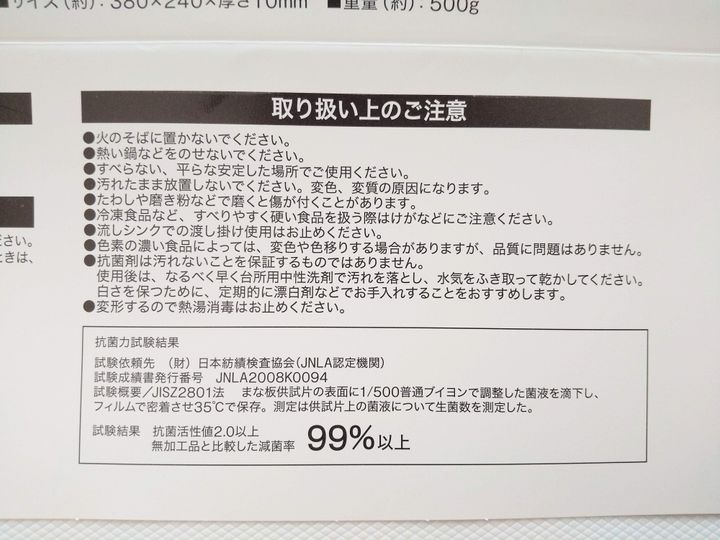 売り場で他のまな板も持ってみましたが、比べるとその軽さがはっきりとわかりました。