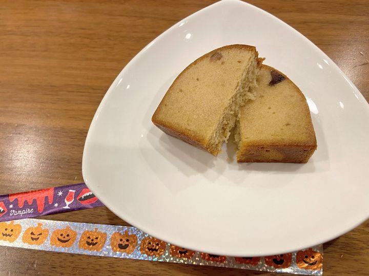 マロンクリームを練りこんだパウンドケーキ。生地はしっとり、ボリューム感もあり、栗の粒も入っているので満足感があります。