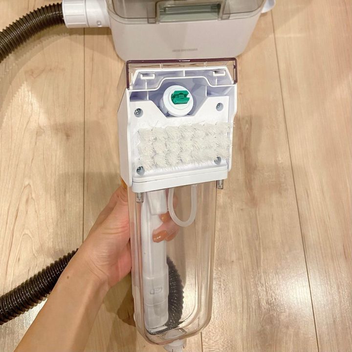 持ち手のところのタンクに水を入れバキュームホースに繋げたら準備は完了。