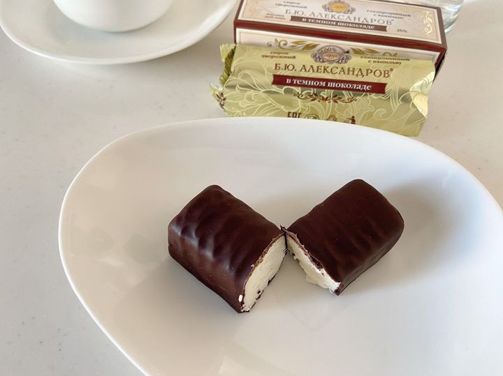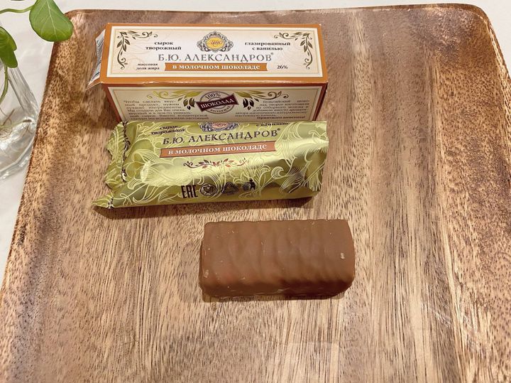 ロシアプレミアムチーズは、カッテージチーズやバターをベースにしたものをチョコレートでコーティングしたお菓子です。