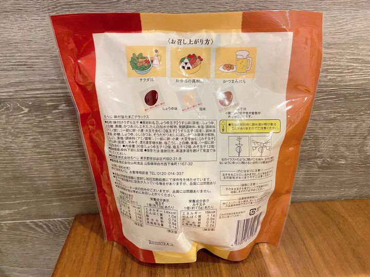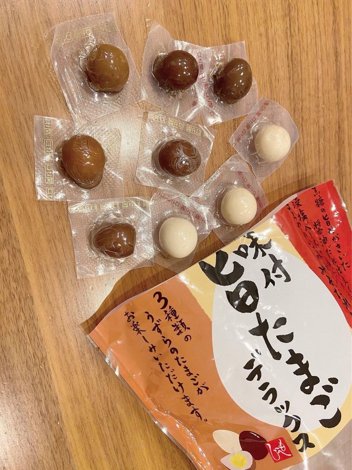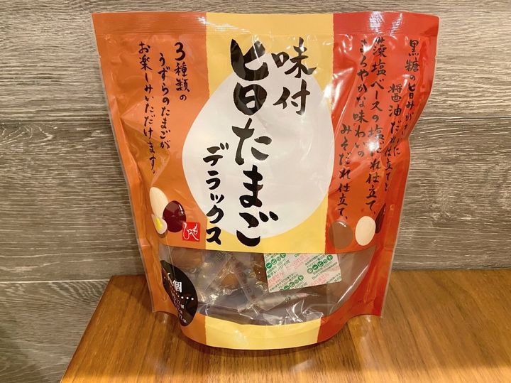 1袋に36個入っていて、黒糖の旨みがきいた醤油だれ仕立て、藻塩ベースの塩だれ仕立て、まろやかな味わいのみそだれ仕立て、3種類のうずらのたまごがどれもおいしくて楽しい。