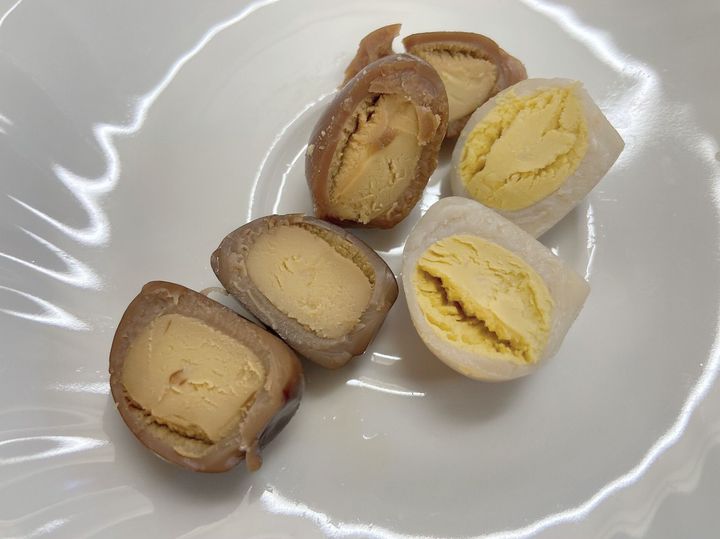 黄身は滑らかで、コクのある醤油味、あっさりとした塩味、まろやかなみそ味と気分に合わせて選ぶのも楽しい。