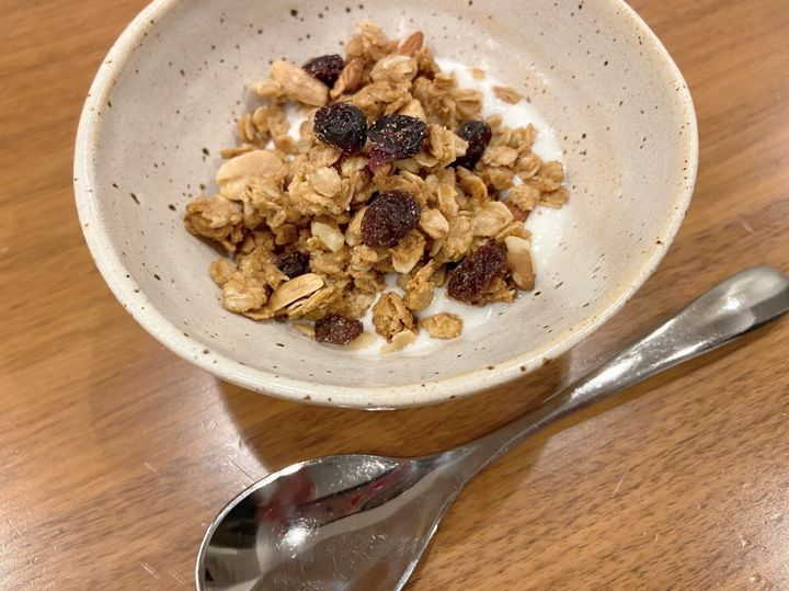 グラノーラにしっかりとハチミツの甘みがついているので、そのままオヤツに摘んでもおいしい。