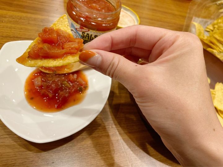 たっぷり乗せて、頬張れば、トマトベースのサルサソースのおいしさが口いっぱいに広がります。