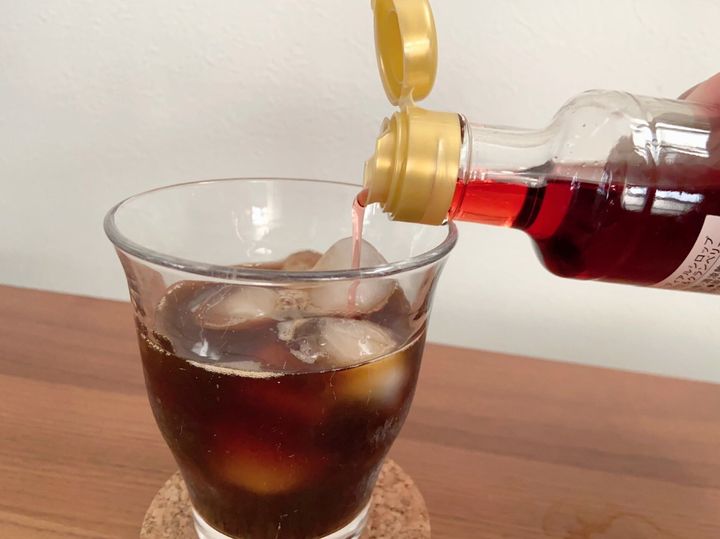 アイスコーヒーにコーディアルシロップをたらりと垂らせば、いつもと違うフルーティーな味わいに。