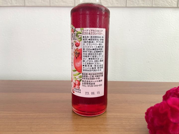 カルディのコーディアルシロップ「ザクロ&クランベリー」