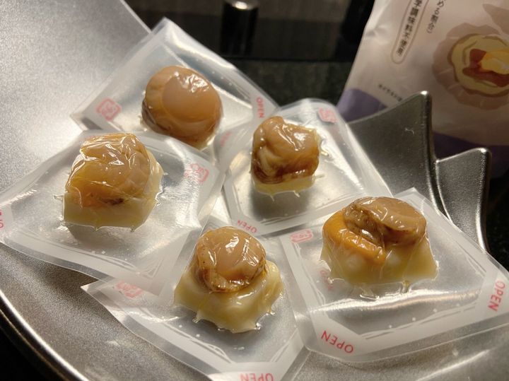 パッケージを開けると、一口サイズのほたてチーズが入っています。
