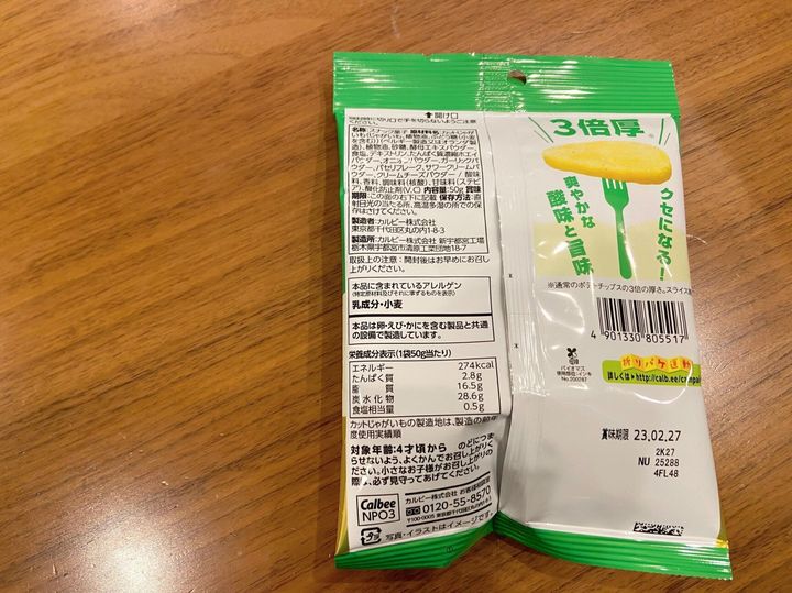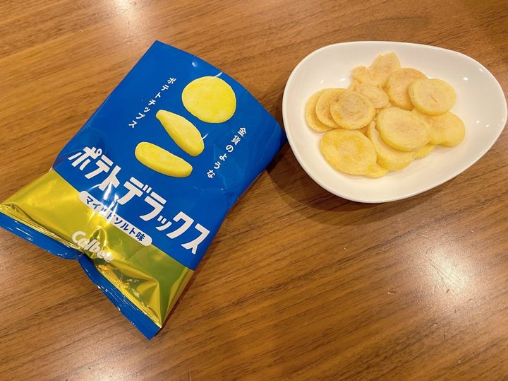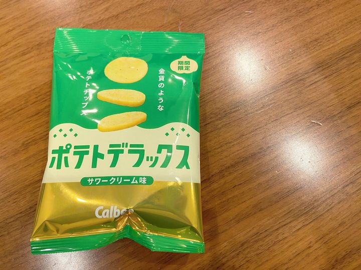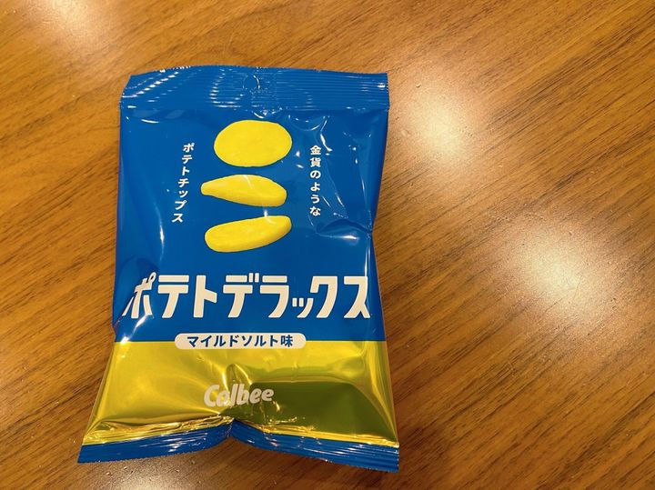 カルビーから発売されている商品で、サイズ的には、定番のポテトチップスの袋のサイズより小さめです。