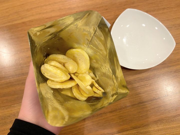 やはり通常のポテトチップスより三倍ぶ厚いので食べ応えがあり、見た目は少なく感じますが、食べてみると普通のポテトチップスと同じくらいの量があります。