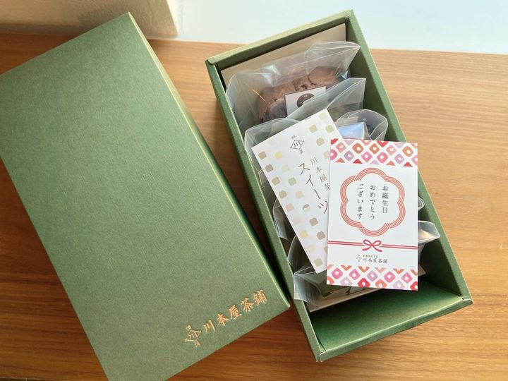 川本屋茶舗は、横浜のお店で、日本茶にあうスイーツを 素材にこだわり 香料、着色料、保存料を使用せずに自家製で一つ一つ丁寧に焼き上げましたとあります。