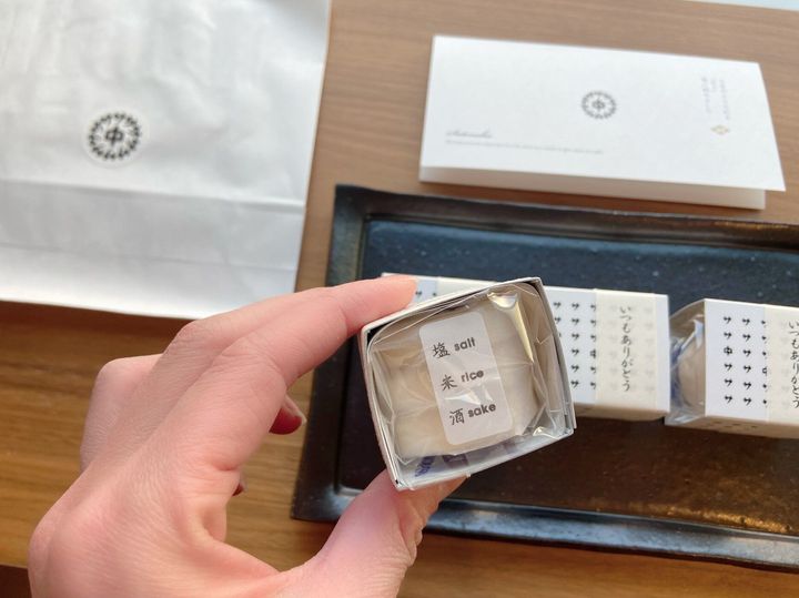 お土産や贈答にぴったりな洗練されたデザインで、伊勢和紙の折り紙で包装されていて高級感があります。