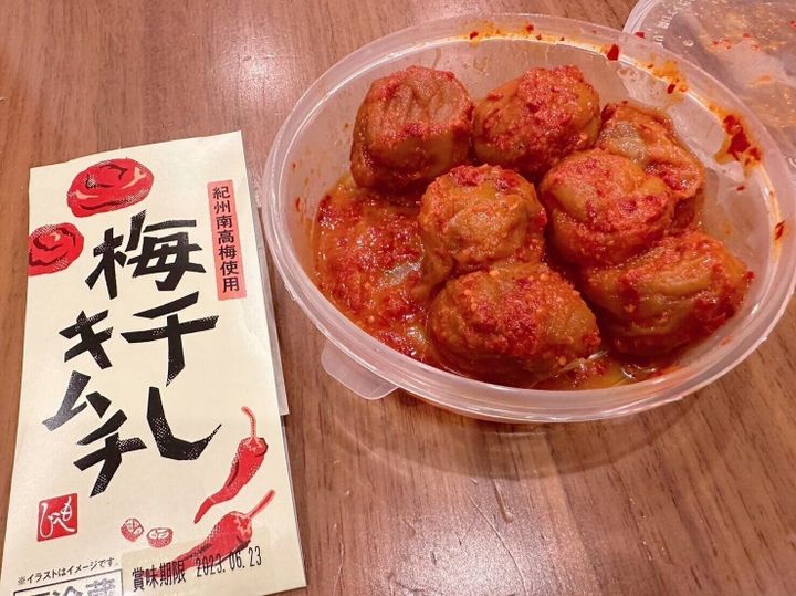 はちみつが効いた甘酸っぱい梅干しと、ヤンニョンで漬けた甘辛キムチがめちゃくちゃに合う!