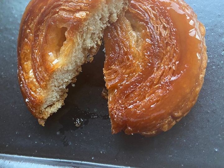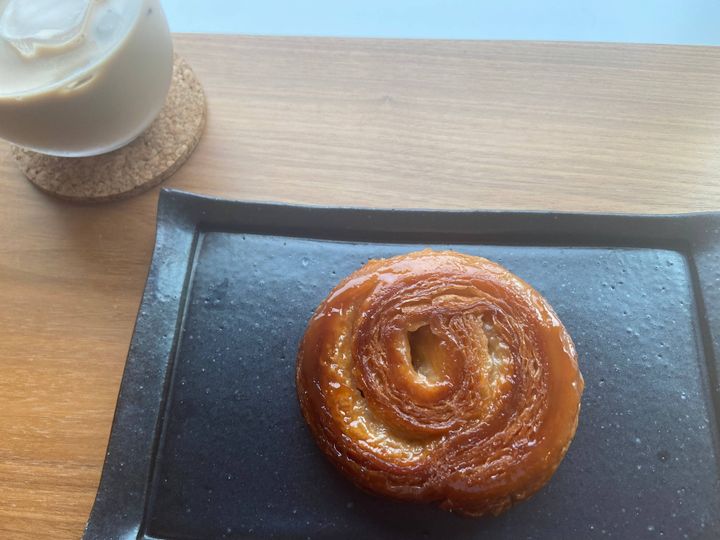 キャラメリゼ部分はガリガリ甘く、デニッシュ生地はさっくり香ばしく中はふんわり食感。