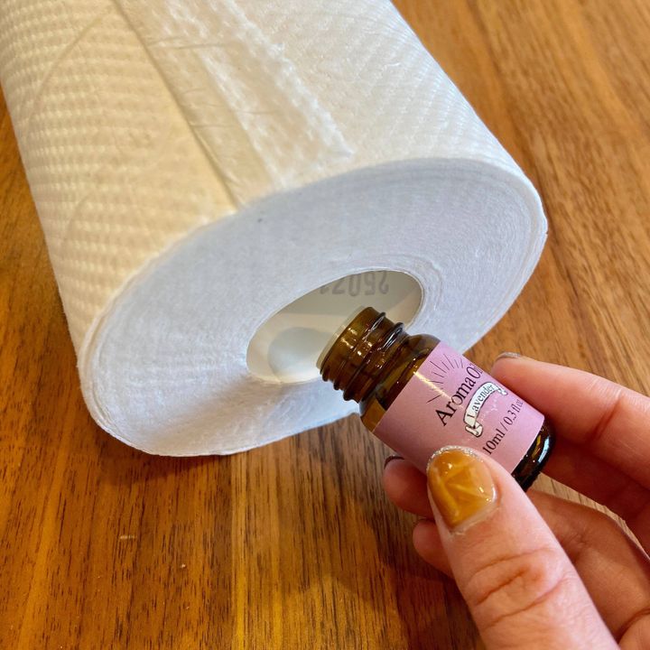 最後の仕上げに、アロマオイルをトイレットペーパーの芯に3〜5滴かけるだけで「トイレの芳香剤」になります。