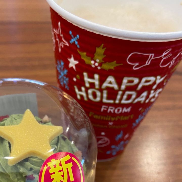 ファミマのスイーツコーナーで、クリスマスツリーのようなかわいいデコレーションが目を引き、心がときめきます。