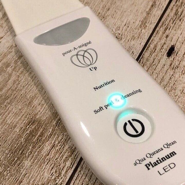 プラソニエ アクア毛穴クリーン。こちらは洗顔で取りきれなかった毛穴の汚れを超音波で吹き飛ばしてくれるもの。使用前にスプレーでお顔を濡らして使用します。使用した後はくすみが取れたような少し明るくなってます。私よりも社会人と大学生の上の子2人のほうがよく使っているような…