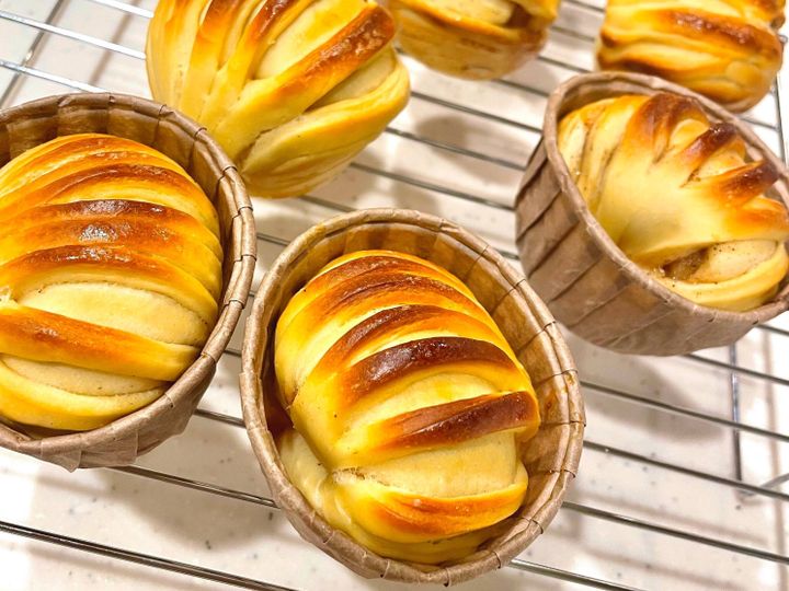 最近、パン作りの師匠(勝手にYouTube先生をこう呼んでます)が本を出した事に刺激され、ウーロールパンを作りました。青森の最高級りんご(青森のおばちゃんありがとう)を使って、最高に美味しくて可愛いパン焼いちゃいました!