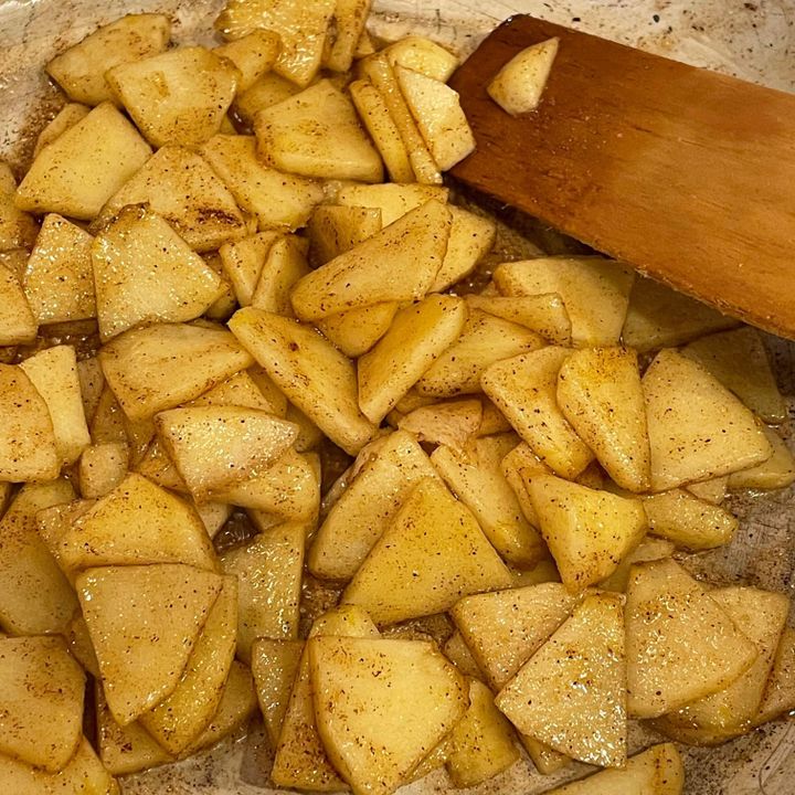 煮詰まってきたらシナモンシュガー(たしかDAISO)をたっぷり入れ、レモン汁を加えて出来上がり。ものすごく適当ですが、焦げなければ味の失敗はないので(笑)。多少焦げてもカラメル味ってことにしますけどね(笑)