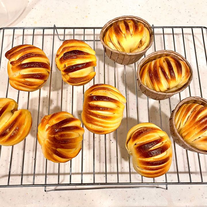 ところが!そんな時に出会ったのがYouTubeあつあつパン教室。パン作りは楽しいよ!なんとかなるからやってごらん!とまぁ私に優しく語りかけてくれまして、目から鱗ポロポロ…で、パン作りに目覚めた訳です。今ではたまご入り生地も使いこなせるまでになりました。本当感謝!師匠と呼ばせてもらいます!