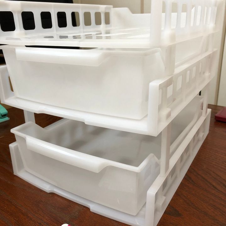 当初、棚の上に置く予定で引き出し2つのラック3段を購入しました。