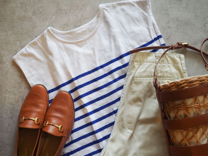 洋服は夏のまま、小物をブラウンで固めてみるのもオススメです。秋ヒット確実なローファーは、ブラウンで柔らかな印象に。黒のローファーよりもカチッとしすぎず、印象が優しく見えます。