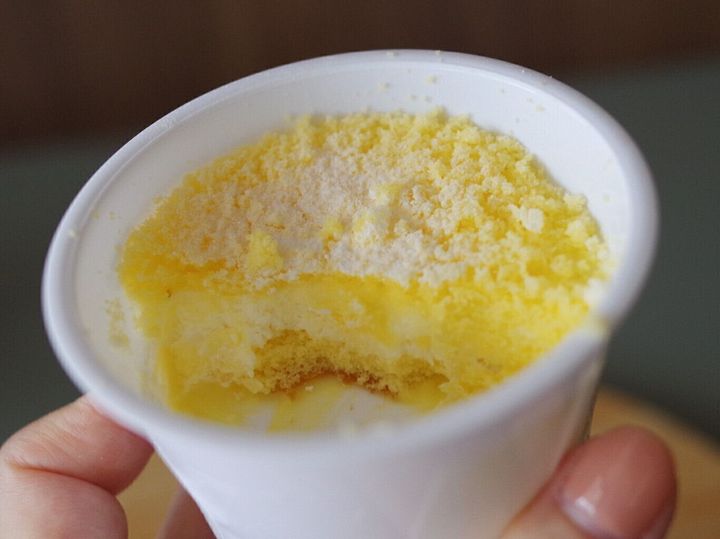 中は、カスタードとチーズムース、スポンジが交互に入っていました。ふわっと軽いくちどけは、まさに天使のようです…!爽やかな後味になるのは、レモンが入っているから。チーズケーキのコクを感じつつもサッパリとしています。