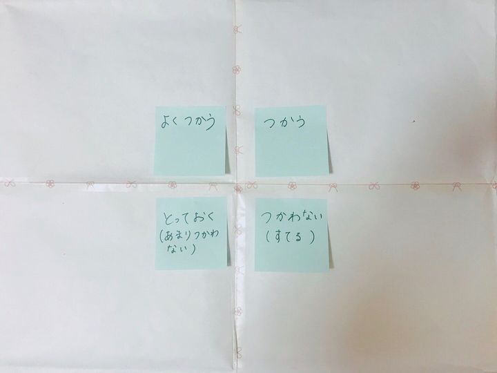 写真のように4つに分けてみたところの写真を撮っておくと良いでしょう。