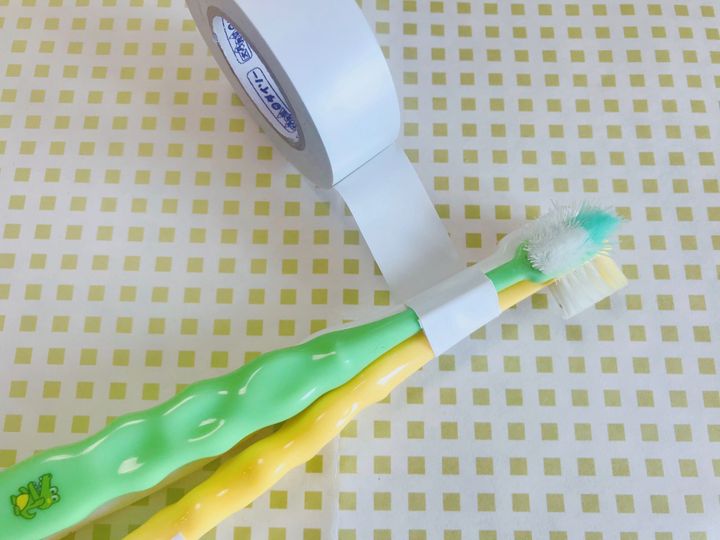 使い古しの歯ブラシを綺麗に洗ったら、数本をビニールテープで束ねます。