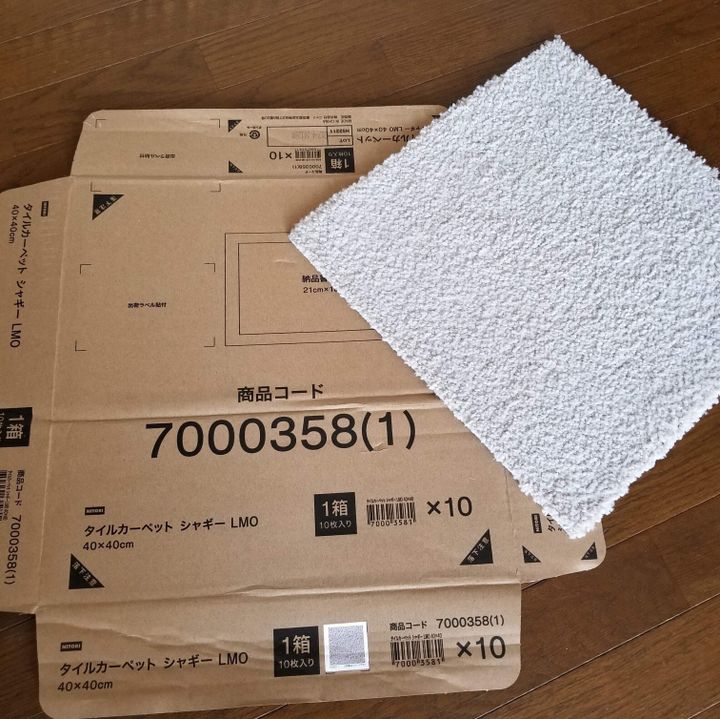 一枚500円程で購入できます。もっと安いのもあったのですが、このタイルカーペットの裏にはシリコンで滑り止め加工がされてあって、他のタイルカーペットの滑り止めより強力に見えたのでこちらの購入に至りました。