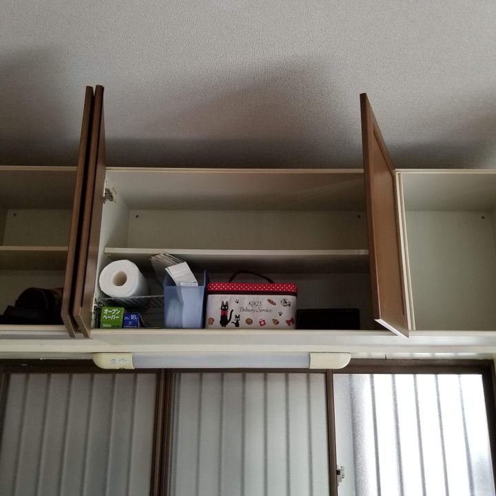 キッチンの頭上にある収納は結構高く、今まではあまり使わないものを入れていました。