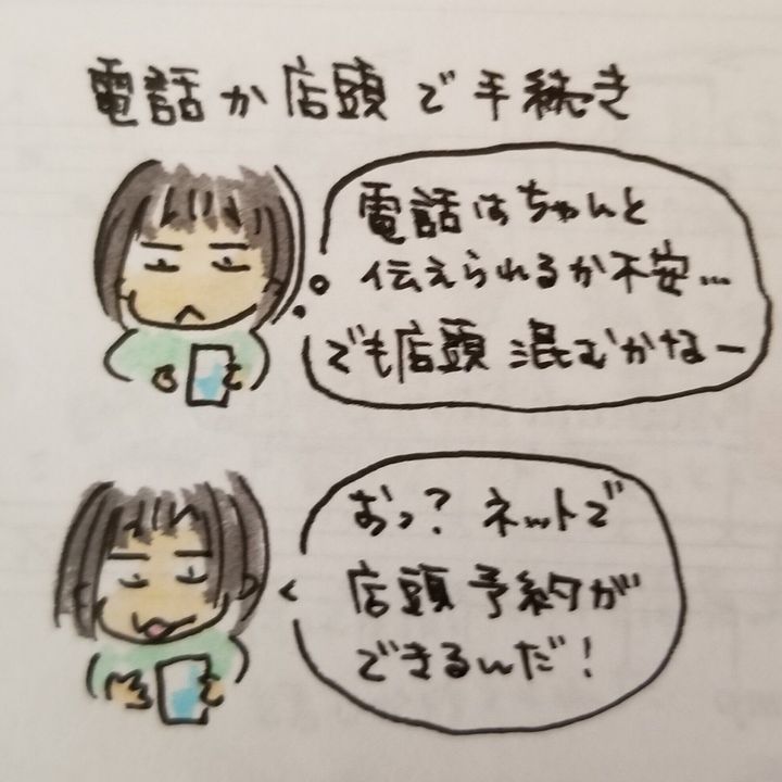 私は電話というものが苦手で、物凄く汗が吹き出てしまいます。耳も多少悪いので、ここは店頭へ出向いてやってもらうことにしました。