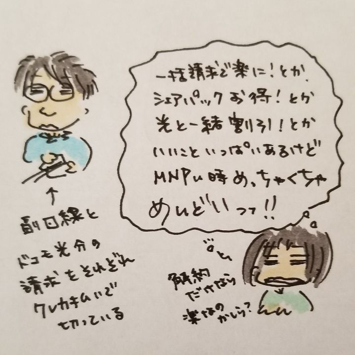 今度はシェアプランがいけないらしくそれぞれを個別プランに変更し、それでもだめで、一括請求プランがいけないらしくそれぞれを別の請求に変更し…もうよくわかりません。