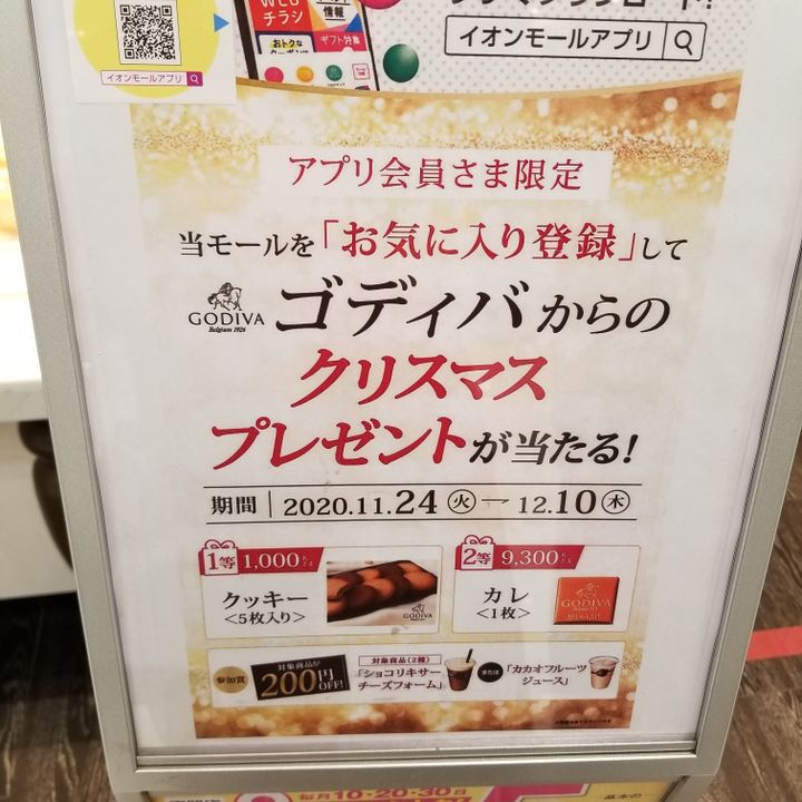 マイナポイントをイオンで使おうと決めてダウンロードした、『イオンお買い物アプリ』でやっていたプレゼント企画に何気なく応募したら、チョコレートの無料クーポン券が当たりました。