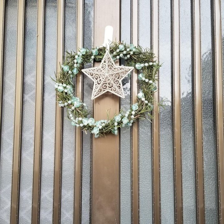 手入れを怠り伸びに伸びた庭のローズマリーを切り、リースを作ってみました。クリスマスツリーの飾りをちょっと拝借して、随分豪華なリースになりクリスマス気分がぐっとアップしました。
