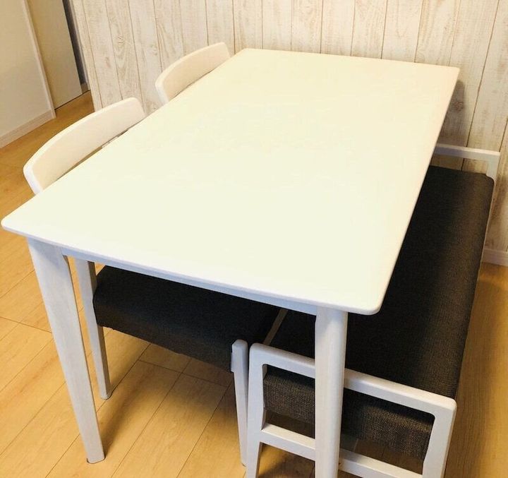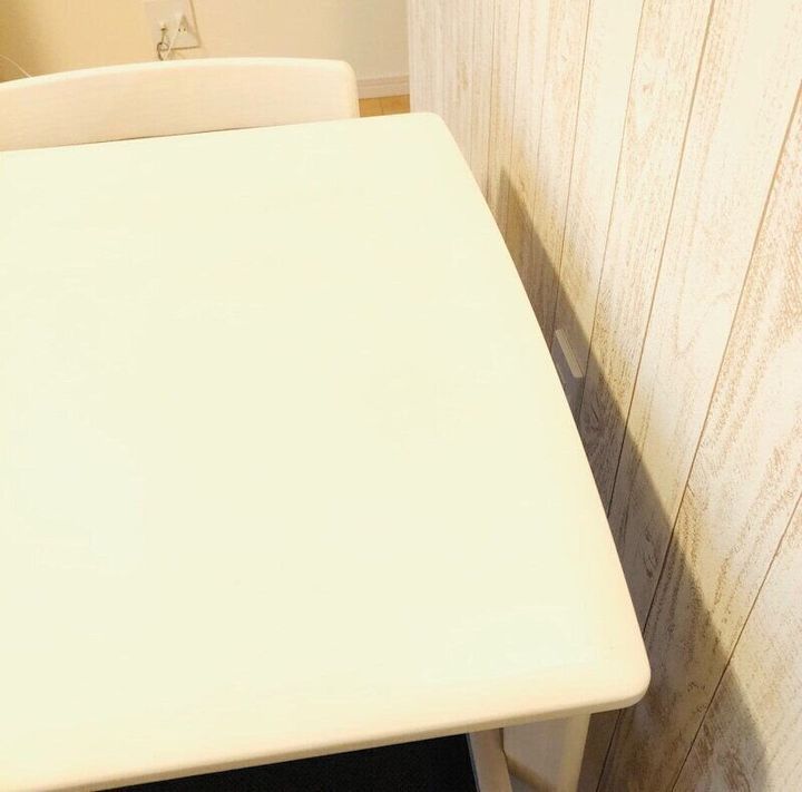 このように、テーブルの端を壁から少し離して置きます。ほんの少しでOKです!5〜10センチ程度で十分。