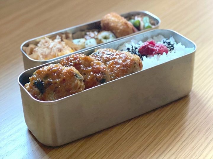 キッチンバサミだけでつくる!「大葉とえのきのつくね弁当」