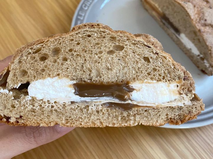 パン生地がビターな味わいなので、クリームの甘さが加わると丁度よいバランスになります。