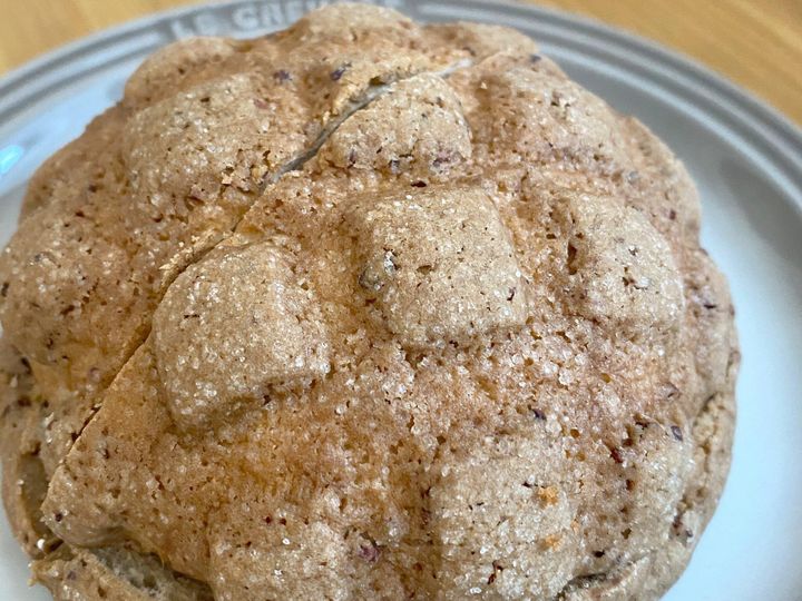 見た目は一般的なメロンパンの茶色バージョンですが、持ち上げてみるとズッシリと重さがあるので、食べる前から期待がふくらみます。