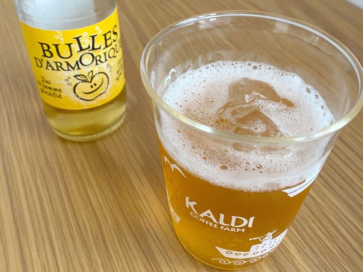 しゅわっと炭酸が爽やかな口当たりの100%りんごジュース。