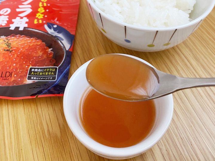 カルディの商品情報では、ご飯にかけるだけで旨みたっぷりのいくら丼風ごはんになります。醤油漬けのいくらを食べているような甘めの味付けです。と紹介されていました。