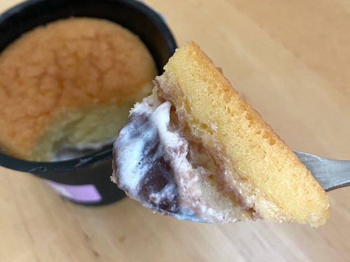 この商品、外見から中身が見えないパッケージになっていて、どんなスイーツなのか?蓋を開けるまで確認する事ができません。コンビニスイーツと言えば透明な容器に入っていて、見た目でもそそられることが多いのですが…この中身が見えないというパターンも新鮮!なんともワクワク感を掻き立てられますね〜(笑)。