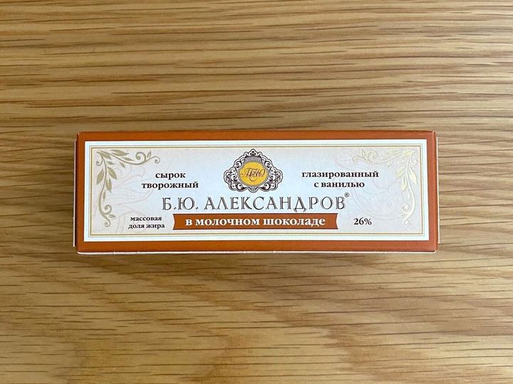 カッテージチーズとバターを使用したチーズバーをベルギーチョコレートを使ったミルクチョコでコーティングしたロシアのスイーツです。