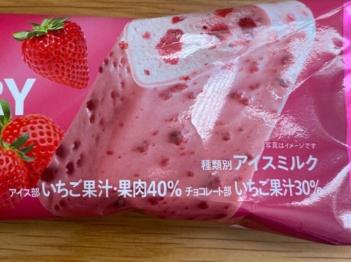 以前販売されていた「ストロベリーチョコレートバー」は乳固形分が15.0%以上入っているアイスクリームだったのですが、リニューアルされたものは乳固形分が10.0%以上のアイスミルク。