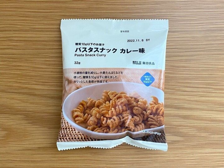 「糖質10g以下」の文字に惹かれて購入したのが「パスタスナックカレー味」。
