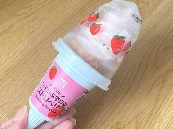【セブン】はじける果実とザクザクコーンが最高すぎる!「つぶつぶ果肉のストロベリー」