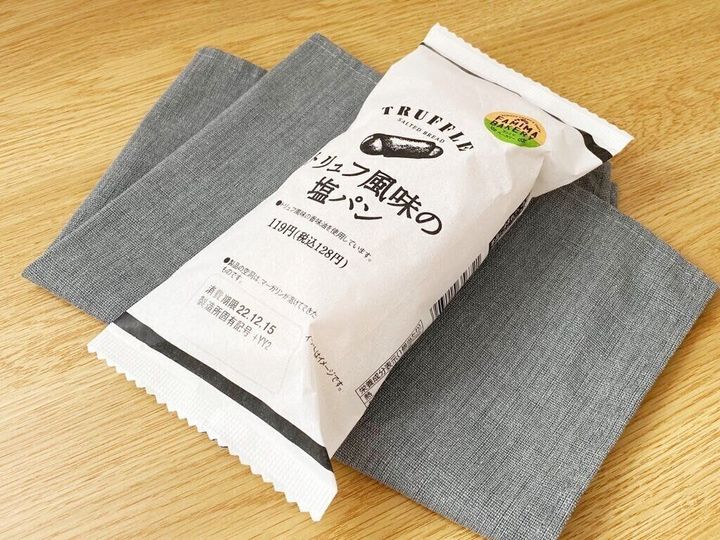 想像以上にトリュフの香りと小麦の風味を楽しめる「トリュフ風味の塩パン」。近くのコンビニで128円で買えるとは思えないクオリティの高い商品でした。朝食や小腹が空いたとき、お酒のお供にもピッタリのパンなので色々なシーンで活躍しそうです。