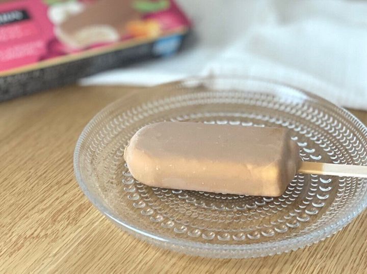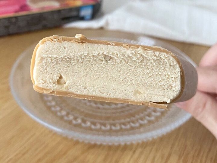 コーティングのキャラメルアイスはパリパリっと軽やかな食感で、口に入るとアイスと共に口どけよく溶けていきます。