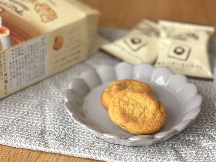 お皿に出すとバターの香りがふわっ。大きさは1枚あたり10.5gなので、定番のカントリーマアムと同じくらいのサイズです。