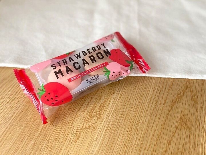 商品名通り濃厚ないちごの味わいをしっかりと楽しめる「ストロベリーマカロン」。1個145円とは思えない本格的な味わいでした。デパ地下まで足を運ぶことなく、近くのカルディで気軽に本格マカロンが手に入るのはうれしいですね。